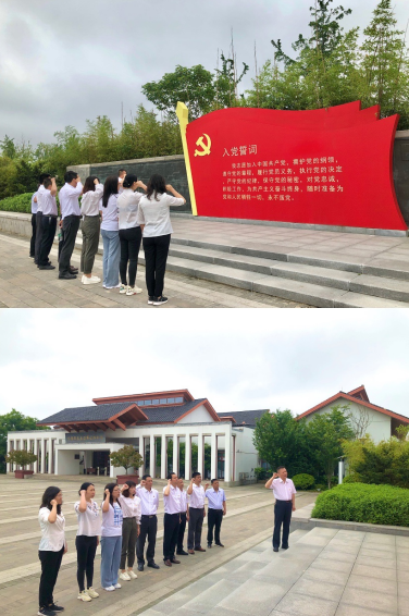 隨后,大家沿著紅色足跡來到了沈浩同志先進(jìn)事跡陳列館,現(xiàn)場認(rèn)真聆聽了沈浩同志的先進(jìn)事跡,在他擔(dān)任村領(lǐng)導(dǎo)的六年中,他深入群眾、拉近距離、調(diào)研走訪、摸清村情,用心融入到小崗村。在為小崗村脫貧致富忙碌奔波中,三過家門而不入,吸引大學(xué)生進(jìn)村創(chuàng)業(yè)、招商引資辦工業(yè)、開發(fā)旅游促三產(chǎn)等一系列措施,使得小崗村村民生活水平顯著提高,文化生活豐富多彩,精神面貌煥然一新。在學(xué)習(xí)沈浩同志先進(jìn)事跡時,大家無不為沈浩扎根小崗、克己奉公、干事創(chuàng)業(yè)的崇高品質(zhì)所感動,更加明白了為什么他能成為小崗村鄉(xiāng)親們?nèi)伟聪录t手印留下的好干部、人民好公仆。在陳列館門前,黨員面對鮮紅的黨旗,重溫入黨誓詞,莊嚴(yán)宣誓。