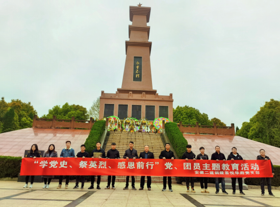4月2日,三分公司銅陵吾悅?cè)A府項目黨支部開展“學(xué)黨史、祭英烈、感恩前行”主題活動。